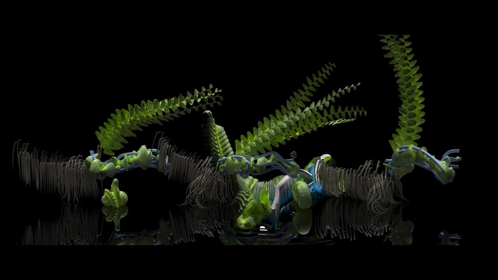 도 다를 바 없다.” 작가는 고사리의 자기복제성과 무성아 번식에 호기심을 느끼며, 고사리의 형태적 특질을 3D 프로그램이라는 가상의 인큐베이터에서 배양하고 인간 몸짓의 궤적을 입혀 발아시킨다. 작품에서 인간은 포자를 위한 배지가 되고, 두 가지 혹은 그 이상의 다른 생물종이 가진 각기 다른 타임라인의 충돌은 하이브리드를 낳는다. 이것은 인류세 이후 대지에 새롭게 나타날 생명체에 대한 배양 실험이자, 종의 경계와 역사가 모호해진 세계에 대한 관찰이다.